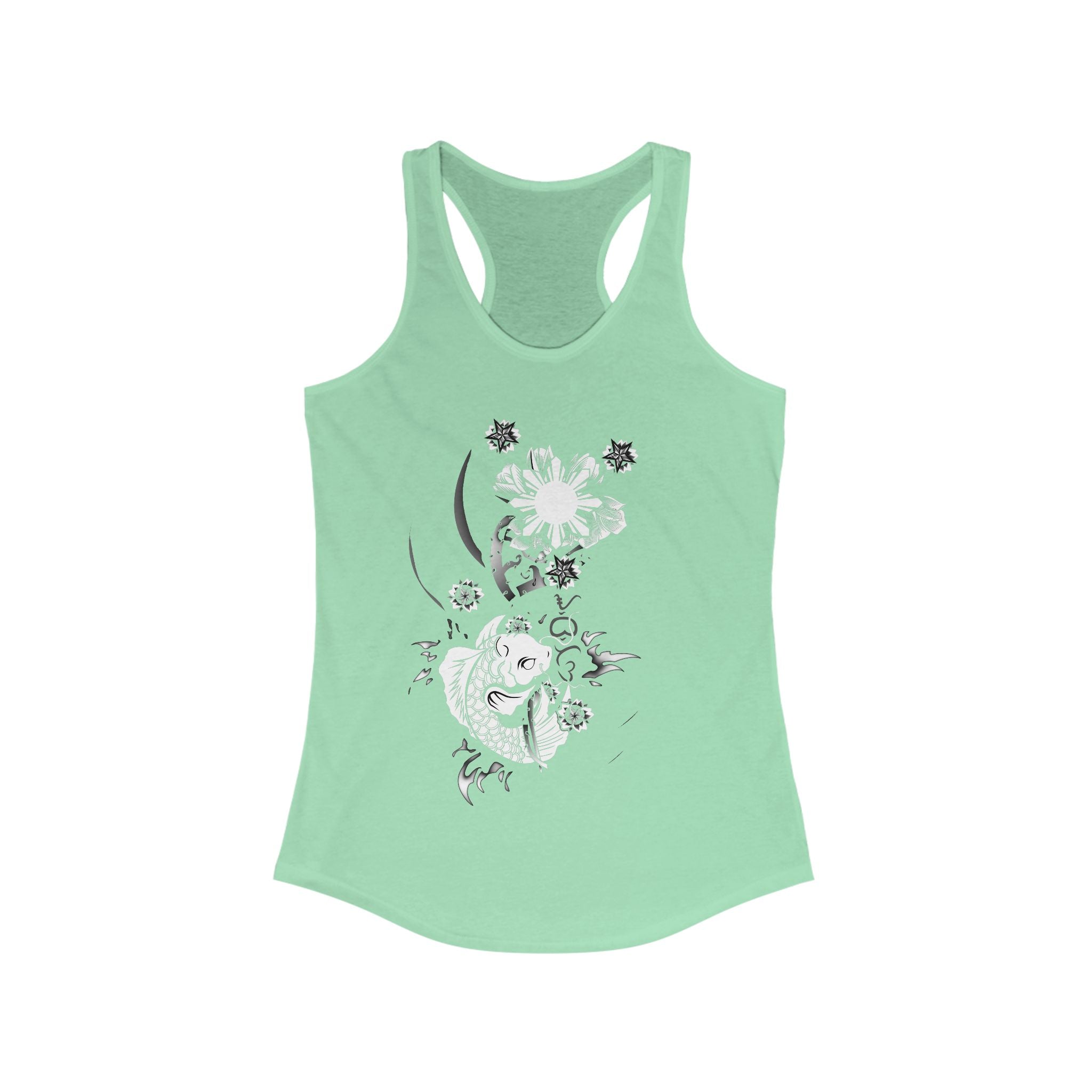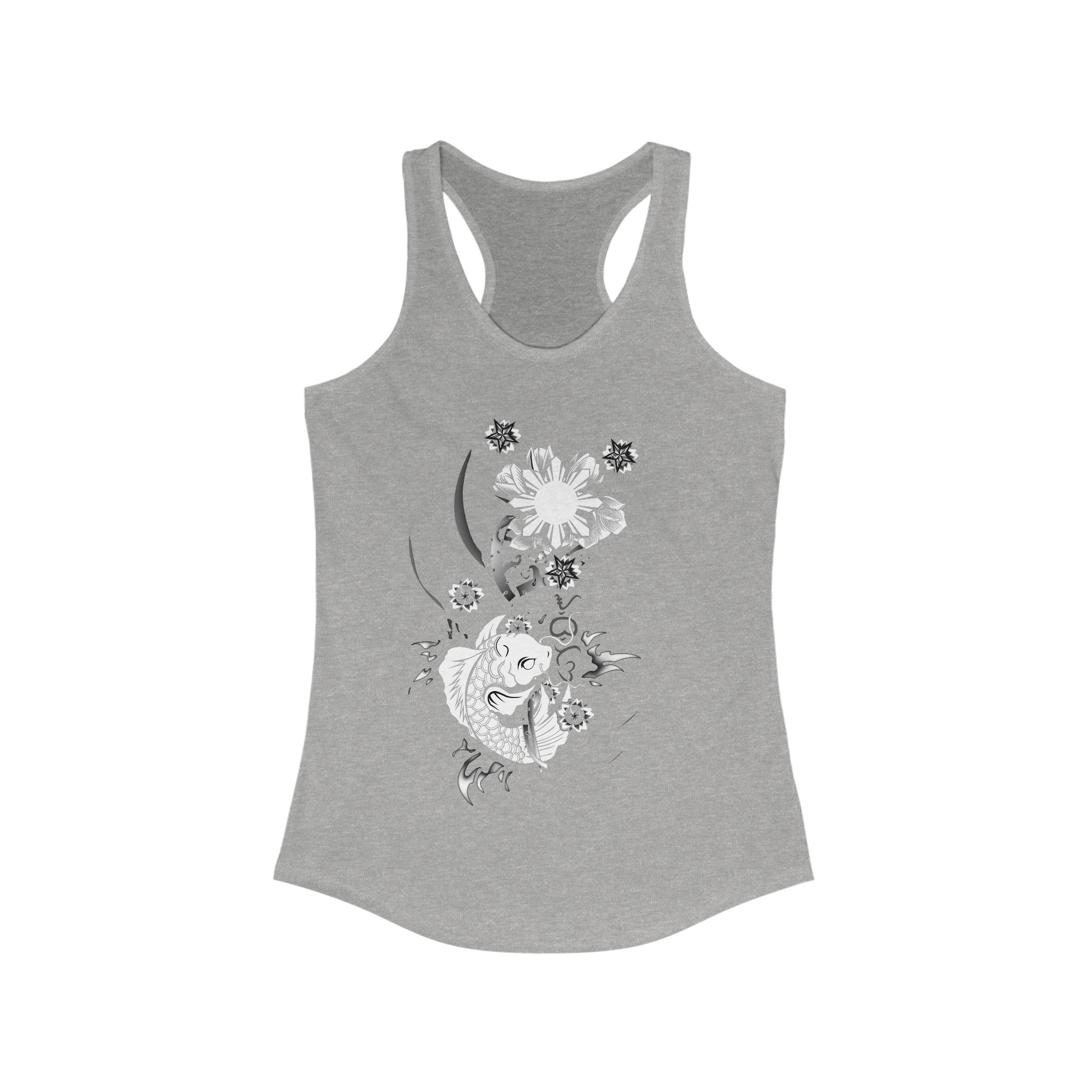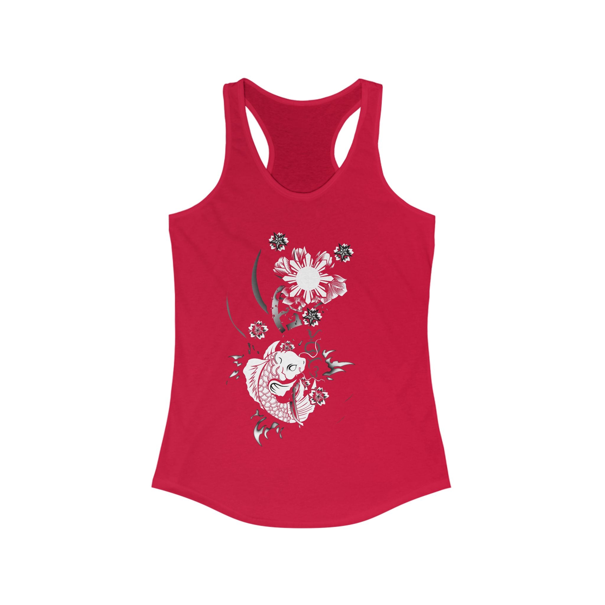 This Floral pinay asian filipina culture flower Koi Sun Womens Racer Tank exudes a vibrant and cultural vibe, perfect for those who appreciate Asian-Filipino heritage. Ideal for casual wear, yoga, or workout sessions, this tank is a lightweight and comfortable choice. Relevant for cultural celebrations, Asian heritage month, and casual outings.