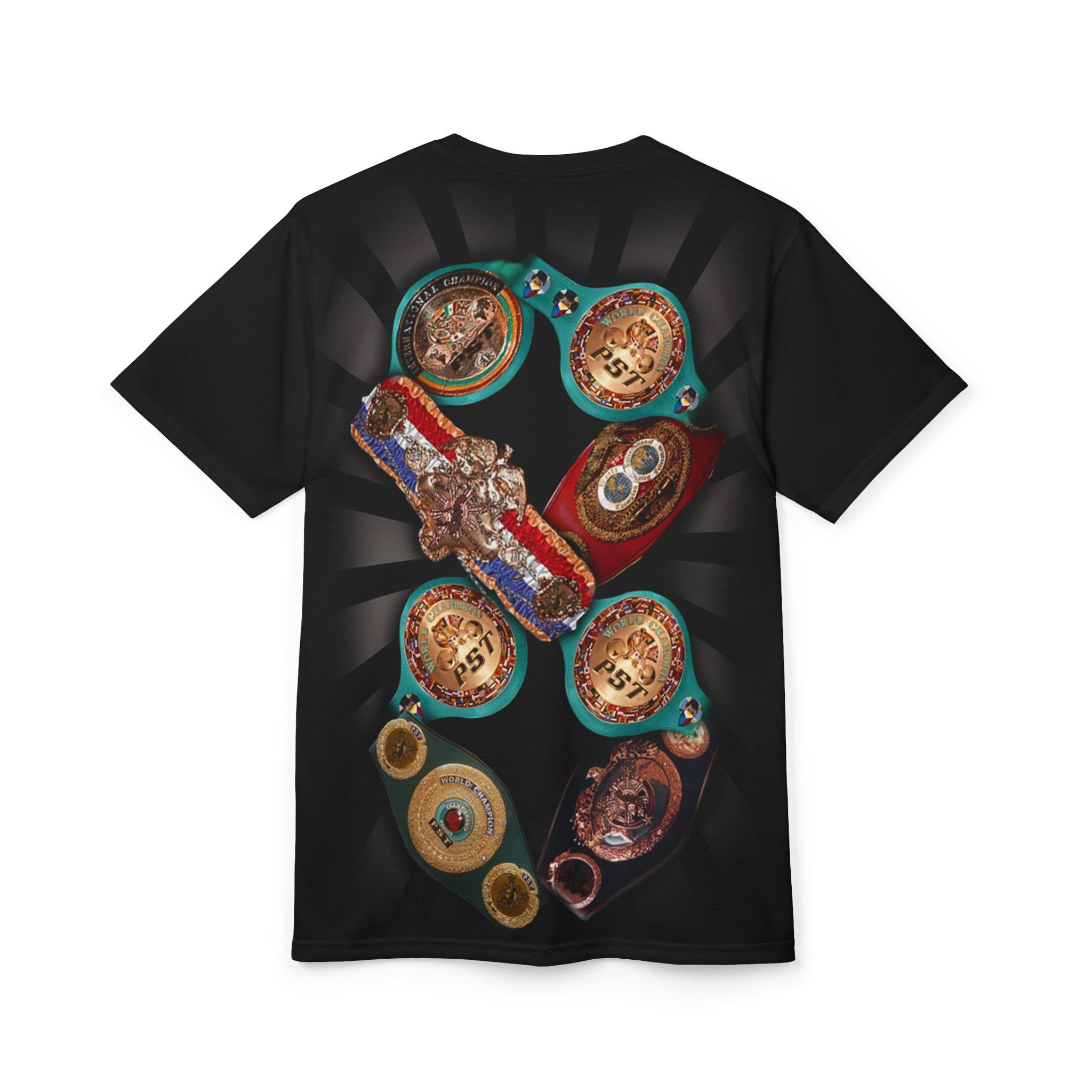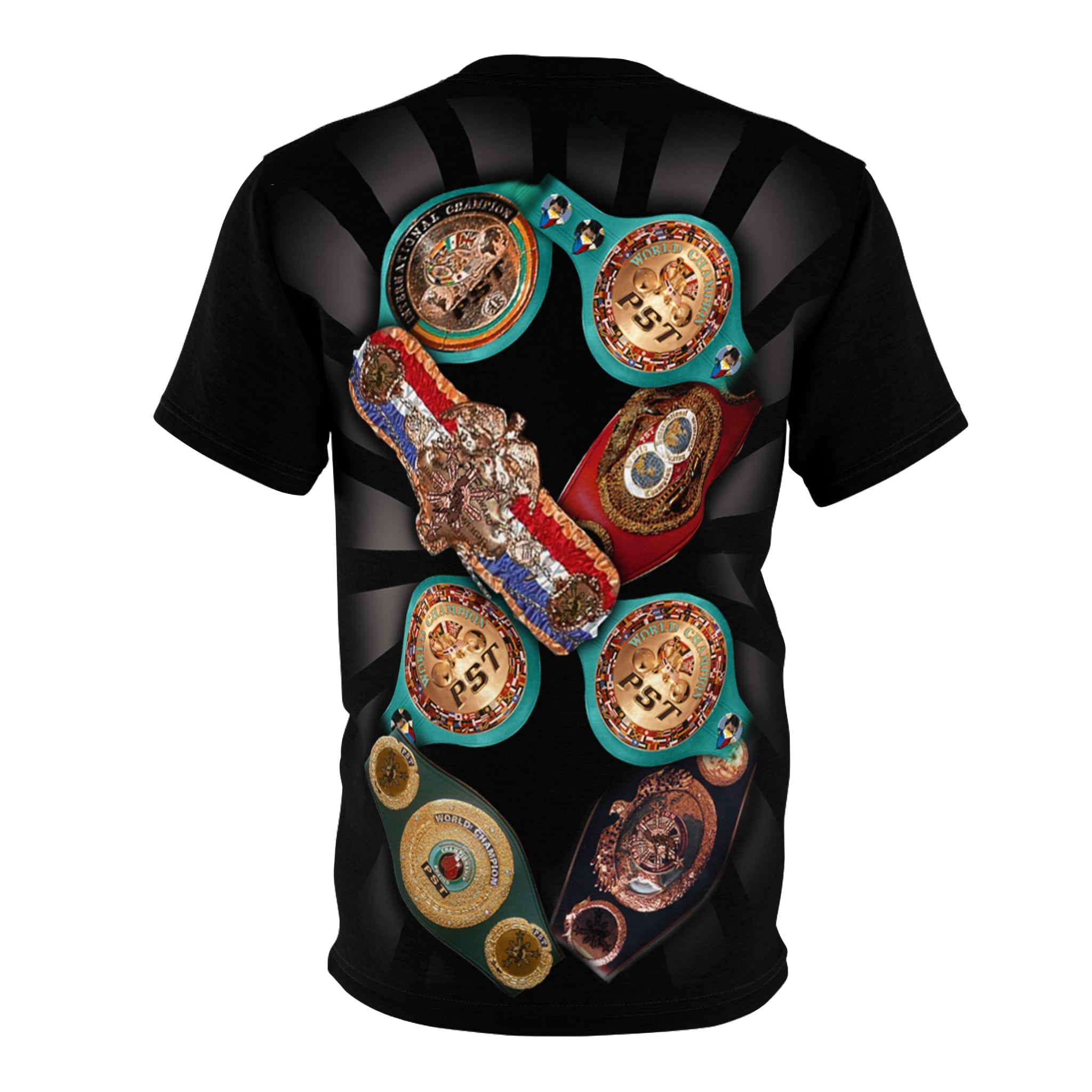 Honoring Philippines Boxing Manny Pacquiao 8 belt Tee features a design showcasing the legendary boxer's achievements. It exudes a sporty and competitive vibe, perfect for boxing fans and enthusiasts. Ideal for wearing during boxing matches, sports events, or casual hangouts with friends.